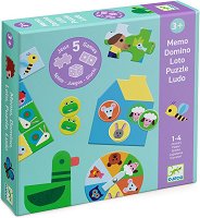 Пет любими класики в една кутия от Djeco! Този 5-в-1 образователен комплект събира игрите мемо, лото, домино, пъзел с 12 части и игра тип търкаляне и преместване, за да се забавлявате часове наред, докато развивате логическо мислене, памет и наблюдателност. В лото комбинирате 4 силуетни дъски, въртящ се диск и 12 кръгли жетона. Мемо идва с 22 жетона за трениране на паметта. Не се сърди човече включва игрална дъска, 4 силуетни фигурки от картон и дърво и дървен зар. Включени са и правила. Темата със сладки селскостопански животни прави игрите още по-увлекателни, а простите правила са идеални за първи стъпки в настолните ... |