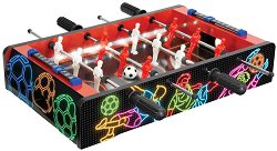 Играта от Ambassador ще зарадва любителите на футбола. Тя разполага с декорация от LED светлини на играчи. Всеки участник в играта може да контролира 2 реда с фигурки, чрез които могат да отбележат голове. Отстрани на масата има броячи, на които играчите могат да отбелязват своите точки. Печели този играч, който пръв отбележи 9 точки. Масата е компактна и удобна за съхранение. Дръжките за игра са удобни за захващане. Забавлявайте се и нека най-добрият победи. Играта работи с 3 батерии AA, които може да закупите отделно. ... |