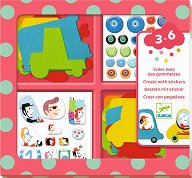Творческият комплект на "Djeco" е чудесен подарък за вашето дете. Забавлението с него ще помогне на малчугана да развие творческото си мислене. Той съдържа 4 картонени шаблона, 4 листа с металик стикери и 16 листа със самозалепващи се елементи от EVA пяна в различни цветове. Върху шаблоните има номерирани празни квадратчета, върху които малкият творец трябва да залепи съответния цвят от меките кубчета. За ориентация детето може да използва картинните инструкции, които също са включени в комплекта. А след като завърши картините, може да ги използва за декорация на стените в детската стая. ... |