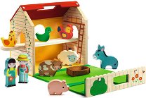 Фермата от Djeco е създадена за малки откриватели. Детето отваря фермата, където го очакват кокошарник и обор, а отвън — голяма поляна за всички животни. Издърпайте дъската от кокошарника и я превърнете в пързалка, по която 9-те дървени фигурки — кокошка, петел, патица, магаре, овца, прасе, крава, фермер и фермерка — се спускат към веселите си приключения. Когато играта приключи, всички аксесоари се прибират вътре, а удобната дръжка позволява фермата да се носи навсякъде. Дървената конструкция, комбинирана с дебел филц, е едновременно здрава и лека, а дебелите елементи са удобни за малки ръчички. Ползи за детето - ... |
