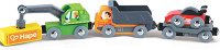 Комплектът от HaPe включва зелен кран с товар, оранжев камион и теглещо ремарке с червен спортен автомобил. Превозните средства могат да се свържат благодарение на магнитите, което позволява създаването на неограничени пътешествия и истории. Децата ще се забавляват часове наред, развивайки въображението, координацията и уменията си за сътрудничество. ... |