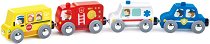 Комплектът от HaPe предлага 4 в 1 цветни превозни средства, включващи жълт училищен автобус, червена пожарна кола, синя полицейска кола и бяла линейка. Всички превозни средства могат да се свързват чрез магнити с всеки влаков комплект, като така се насърчава въображението и ролевата игра на децата. Те ще се забавляват часове наред, развивайки координацията и уменията за логическо мислене. ... |