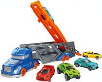 Дайте шанс на малчуганите да се впуснат в скоростни приключения с автовоза и количките. Автовозът разполага с повдигаща се платформа, от която могат да се спуснат цветните колички. Децата могат да разиграват ролеви игри като организират състезания и се забавляват. Размерите на автовоза са 30 x 9 cm. ... |