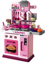 Вашето дете ще се забавлява с розовата кухня Mini Kitchen. Тя разполага с кухненски плот и отделен котлон с шкафове. Кухненският плот има котлони и мивка. Големият шкаф на отделния котлон може да се отваря и затваря. В комплекта са включени 24 аксесоара като тенджери, тигани, чайник, наденичка, пиле и аксесоари. Малчуганите ще развият своето въображение, докато играят. ... |