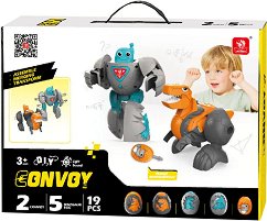 Конструкторът се състои от 19 части, с които могат да се сглобят динозавър и роботче. В кутията има 5 динозавърски яйца, в които са прибрани частите за сглобяване и отвертка. Роботите могат да се движат и да издават звуци чрез натискане на бутон. Устата на динозавъра може да свети. Дайте шанс на вашето дете да развие своето въображение, фина моторика, сръчност и логическо мислене, докато играе. Всеки динозавър работи с по 3 батерии L44, които са включени в комплекта с демонстративна цел и е необходимо да се заменят с нови. Образователният комплект е вдъхновен от методологията STEM (Science, Technology, Engineering and ... |