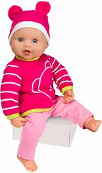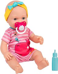 Интерактивното бебе ще се превърне в любима играчка за вашето момиченце. То е меко и приятно за гушкане, което ще го превърне в чудесен помощник за приспиване. Бебето пристига в комплект с шише и биберон. Той разполага с бутон в средата, който ще издаде различни бебешки фрази и звуци. Така когато поставите биберона в устата на бебето, ще изглежда сякаш то може да говори. Освен това бебето може и да се храни. Напълни шишето с вода и го нахрани. Когато е готово, бебето ще се изпишка. Сложи я да легне и виж как очите му ще се затворят. Куклата е облечена в сладко розово боди с изображения на животни, а на главата си има ... |