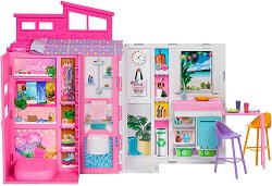 От Mattel представят напълно обзаведена, двуетажна преносима къща подходяща за куклите Барби на вашето дете. Тя се отличава с модерен дизайн, характерен за стила на Барби. Къщата представлява удобно за носене куфарче с дръжка. Когато се разпъне пред детето ще се разкрият 4 зони за игра. От едната страна на къщата са разположени кухнята, банята и спалнята, а от другата се разкрива чудесен външен двор, подходящ за градинско парти. Сега Барби ще може да приготви вкусна храна на готварската печка в кухнята, която да сервира на приятелите си в градината. А в края на деня ще може да вземе душ в банята и след това да се ... |