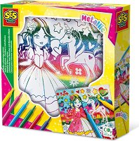 С металик платното за оцветяване с принцеси и еднорози от SES Creative всяко дете може да създаде свое собствено блестящо произведение на изкуството. Платното е с готови контури на рисунка с металически ефект, който придава уникален и сияен завършек на всяка творба. Просто използвайте включените 6 цветни флумастера и оцветете любимите си герои – принцеси и еднорози. Комплектът съдържа истинско платно, монтирано върху здрав картон, и картинка с металически ефект в няколко цвята. Оцветяването е лесно и чисто, а ярките и весели цветове на флумастерите осигуряват отлично покритие без нужда от боя. Този творчески комплект ... |