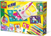 С комплекта от SES Creative малките артисти могат да създадат впечатляващи и цветни графити с лекота. Достатъчно е да поемат въздух и да издухат цвят върху предварително отпечатаните карти с помощта на специалните писалки. Включените шаблони помагат за оформяне на фигурите и създаване на интересни форми, а накрая творбите могат да бъдат подчертани с черния маркер за още по-ярък ефект. Истински малки произведения на изкуството, създадени със забавна и лесна техника. Комплектът е чудесен начин децата да развият своята креативност, фината моторика и усета си към цветовете, докато се забавляват. ... |
