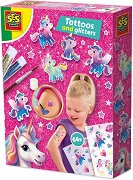 Добави истинска доза вълшебство с комплекта Еднорози - татуировки и брокат от SES Creative. Самозалепващите се татуировки с металически ефект придават искрящ и магичен вид, като се поставят и отстраняват бързо и лесно. Те са дерматологично и козметично тествани и напълно подходящи за детската кожа, което ги прави безопасни за игра и забавление. Комплектът включва не само татуировки, но и два цвята козметичен брокат, както и лепило с брокат, с които можеш да добавиш още повече блясък и да създадеш уникални дизайни. Това го прави чудесен избор за подарък, за тематични партита или за всички малки фенове на еднорозите, които ... |