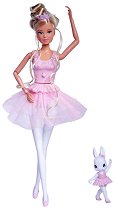 Куклата е от серията Steffi LOVE, където ще откриете още по темата. ... Зарадвайте вашето малко момиченце с куклата Стефи от Simba. Тя е облечена в розов тоалет за балерини в комбинация с тиара на главата. В комплекта ще откриете и малкия ѝ приятел - бебе зайче балерина, чиято балетна пачка може да се сваля. Куклата притежава напълно подвижни крайници като на ръцете има специални стави, които и позволяват да движи лактите и китките си. На корема си има копче, което при натискане ще завърти пачката ѝ. Вашата принцеса ще може да изпълнява различни балетни стъпки и съчетания. Куклата е с височина 29 cm. ... |