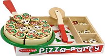 Резенчета салам, чушки, гъби... - макар и да е детска играчка, пицата на "Melissa & Doug" е като истинска. В кутията има табла с 6 дървени парчета като тези на пицата в реалността и 54 "гарнитури" от дървени фигурки на чушки, гъби и салами. Дали пицар, ресторантьор или просто продавач на пица - малчуганът може да измисля най-различни истории за детските игри. Естествено, както в реалността, така и тук пицата може да бъде приготвена по собствен вкус - чрез гарнирането с фигурки на "хранителни продукти" бързо се получава оригиналната "рецепта". А с малката дървена шпатула детето може ... |