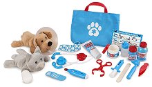 Развийте потенциала на вашето дете с комплекта на Melissa & Doug. Той включва 24 части, които са необходими на всеки начинаещ ветеринар. Малчуганът ще се запознае със стетоскоп, термометър, спринцовка, пинсети, яка за домашните любимци, превръзка, лепенка, лекарства и мехлеми. Животните за лекуване са плюшени котка и куче. Всички аксесоари могат да се съхранят в платнена чанта. Децата ще лекуват животни навсякъде с преносимия комплект. Той е подходящ за ролеви игри и спомага за развитието на въображението, чувството на емпатия и фината моторика. Размерите на комплекта са 34 / 27 / 9 cm. ... |