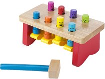 Ангажирайте децата с класическата дървена наковалня от Melissa & Doug, изработена от висококачествено масивно дърво и безопасни за деца материали. Наковалнята разполага с 8 ярко оцветени колчета, които играят peekaboo, като се повдигат и спускат, докато детето се забавлява, използвайки дървен чук. Колчетата се редуват да показват усмихнатите си лица, което прави играта интерактивна и весела. Докато се упражняват да назовават цветовете и да удрят колчетата, децата развиват координация око-ръка, фината моторика и разбират връзката между причина и следствие. Наковалнята е с размери 25.4 / 12.7 / 10.7 cm. Образователният ... |