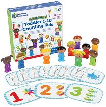 Образователният комплект от Learning Resources е подходящ за малчугани над 3-годишна възраст. Той се състои от 10 фигурки на човечета и 10 двустранни карти, прибрани в удобна кутия с капак. На всяка от фигурките има изписана цифра, а дрешките са в различен цвят - червено, синьо, зелено, жълто и други. Детето може да се опитва да отгатва какви са цветовете, кое число е изписано на всяка от фигурките, а също така да открива числата и цветовете на картите и да ги съпоставя с правилните фигурки. Човечетата са с размери, удобни за хващане от детските ръчички и са подходящи както за активна игра, така и за смятане и броене. ... |