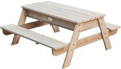 Комплектът е част от серията Classic Educational, където ще откриете още дървено обзавеждане. ... Комплектът от Classic world е чудесното допълнение за всеки двор и градина. Той представлява дървена масичка с 2 вградени пейки. Масата се отваря и се превръща в детски пясъчник, в който може да се сложи пясък или вода. Когато играта с пясъчника приключи, трябва само да затворите масичката и по този начин ще запазите пясъкът чист. В единят край на масата има канал, през който чрез отварянето му изтича съдържанието на пясъчника. Градинската маса с пейки е с приблизителни размери 116 / 104 / 53.06 cm. ... |
