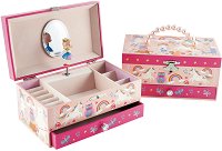 Ако вашето момиченце обожава света на вълшебствата, иска да бъде като принцеса и мечтае да има свои приказно красиви аксесоари в стаята. Е, кутията ще допринесе за "магията" на приказния свят, в който момичето ви да се почувства като принцеса. "Floss and Rock" създава тази музикална кутия, която да бъде едновременно практичен и красив аксесоар. Създадена да съхранява детски бижута, кутията разполага с 1 голямо отделение тип органайзер и 1 чекмедже. За да може малката принцеса да види как ѝ стоят бижутата от вътрешната страна на капака има и огледалце. А щом навиете механичното ключе, което се ... |