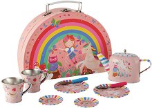 Всяка малка госпожица иска да има собствен чаен сервиз, за да посреща своите гости. Затова комплектът от "Floss and Rock" е чудесен избор за всяко момиче! Той е изработен от метал. Комплектът се състои от чайник, 2 чаши, 4 чинийки, 2 лъжички. Всички компоненти са декорирани в ярки цветове и апликация на феи и еднорози. За да може да носи любимия си комплект навсякъде, той се предлага в куфарче. То разполага с дръжка и се заключва със закопчалка. Куфарчето е с приблизителни размери 25 / 18.5 / 7.5 cm. ... |