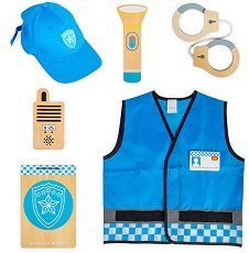 Децата ще се превърнат в истински полицай с костюма от Bigjigs Toys. Комплектът разполага с полицейска жилетка, шапка, дървено уоки-токи, значка, фенерче, папка за документи и белезници. Шапката е изработена от памук. Децата могат да разиграват ролеви игри и да развият своето въображение като се превърнат в истински полицай. Дайте им шанс да се забавляват. Размерите на жилетката са 40.5 x 44 cm. Диаметърът на шапката може да се регулира между ∅ 48 - 57 cm. ... |