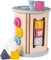 С играчката от Bigjigs Toys децата ще имат възможност да научат формите. Тя има 4 страни с различни дейности, сред които сортер с фигури, дървена книга, дървени въртящи се зъбни колела и други активности. Освен това формата на играчката позволява да бъде търкаляна или бутана по земята. Посредством играчката децата развиват своите двигателни умения, фина моторика, сръчност и координация. Играчката е с размери Ø 18 x 22.7 cm. ... |