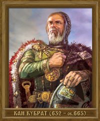 Кан Кубрат бил предводител, който от обединените племена на българите създал държава, наречена Велика България. Не е известна точната година на неговото раждане, но се предполага, че е около 605 г. Около 632 г. начело на българите уногондури Кубрат обединил българите от Черно море във военно-племенен съюз, наречен Велика България, чиято столица била Фанагория. След смъртта му Велика България се разпаднала. Основните ѝ племена се разселили, предвождани от петимата му синове - Батбаян, Котраг, Аспарух, Кубрат и Алцек. Портретите на велики личности от Средновековна България са съвместен проект на издателство " ... |