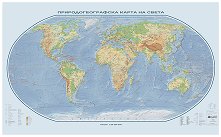 Стенната карта е ламинирана, с лайсни за закачване. Размери: 150 x 100 cm. В съдържанието на картата са включени: географски обекти; коти за височини в метри; коти за дълбочини в метри; обекти на подводния релеф; океански течения; полезни изкопаеми; държавни граници; населени места (столици и градове); по-големи летища и пристанища. ... |