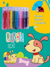 Книжката от издателство Пух включва черно-бели странички за оцветяване и цветни модели, които да следваш. Оцвети рисунките според тях или по твой избор в любимите си цветове и се забавлявай. Към нея ще откриеш и 8 цветни молива. За да оцветите тази книжка препоръчваме да използвате моливи или пастели, за да избегнете цветовете да се отбележат на другата страница. ... |