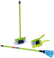 Децата ще се забавляват с комплекта от Klein. Той включва метла с дръжка, парцал с дръжка и четка за почистване на прах с лопатка. Малчуганите могат да разиграват ролеви игри като изметат и измият пода вкъщи или почистят прах от различни повърхности. По този начин те ще развият своето въображение и ще подобрят своята фина моторика, сръчност и координация око-ръка. Височината на метлата за почистване с дръжката е 55.5 cm, а тази на парцала с дръжката е 62 cm. ... |