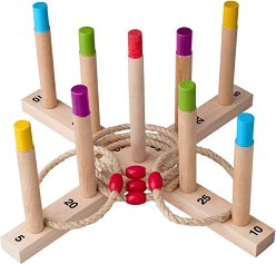 Играта с рингове Hoopla на Woodyland ще донесе много забавни мигове на вас и вашите деца. Комплектът се състои от кръстосана основа, 9 колчета с цветен край и 5 въжени ринга. Целта на играта е ринговете да се хвърлят и да се уцели някоя от пръчките. Всяка от тях носи различен брой точки. Съберете най-голям брой точки и победете останалите играчи. ... |