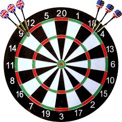 Дартсът е двустранна мишена с метална мрежа, подходяща за начинаещи и за забавна игра със семейството и приятелите. Комплектът включва 6 стрели със стоманен връх и предлага отлична възможност за трениране на точност и концентрация. Изработен е от картон и метал и е подходящ за първите стъпки в дартса. Мишената е с диаметър 40 cm. Дължина на стреличките e 15 cm. ... |