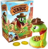 Пази се от ухапване и върни откраднатото съкровище с гърмящата змия Джейк от Goliath. Змията е откраднала твоето злато – но можеш ли да го върнеш, без да те изненада? Внимавай за нейното зловещо тракане и действай бавно и внимателно, за да не я събудиш. Играчите трябва да съберат възможно най-много златни късчета, без змията да ги атакува. Ако Джейк те изненада по време на твоя ход – ще трябва да му върнеш половината от събраното злато! Напрежението расте с всяко движение, докато чакаш големия скок. Играта е изпълнена с емоции, напрежение и смях, като развива концентрацията, бързината и вниманието на децата. Победител е ... |