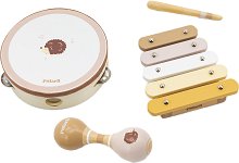 Комплектът е част от серията PolarB, където ще откриете още играчки и игри по темата. ... За всеки малък музикант от Viga Toys са приготвили този комплект. Той се състои от ксилофон с палка, дайре и маракас. Компонентите са изработени от дърво, оцветено в нежни цветове. Върху музикалните инструменти има изображение на таралеж. Докато играе с тях малчуганът ще развива своя музикален слух, чувството си за ритъм, както и координация си. ... |