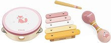 Комплектът е част от серията PolarB, където ще откриете още играчки и игри по темата. ... За всеки малък музикант от Viga Toys са приготвили този комплект. Той се състои от ксилофон с палка, дайре и маракас. Компонентите са изработени от дърво, оцветено в нежни цветове. Върху музикалните инструменти има изображение на лисица. Докато играе с тях малчуганът ще развива своя музикален слух, чувството си за ритъм, както и координация си. ... |