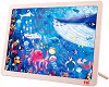 С детския образователен пъзел от Toi World детето ви ще се запознае с азбуката и животните на английски език. Пъзелът е подходящ за деца над 4-годишна възраст и се състои от 50 части с двоен слой бял, картонен материал. След като сглоби пъзела малчуганът ще се срещне за първи път с 26 животни и техните имена на английски език. Към пъзела има включени 26 букви, които трябва да бъдат поставени върху очертана буква от името на дадено животно, на което отговарят. Буквите са дървени със заоблени краища и са пригодени за малките ръчички на вашето дете. Към тях са добавени магнити като по този начин ще можете да ги използвате ... |