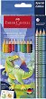 Цветни моливи Faber-Castell Grip 2001 - Динозавър 10 цвята + 3 металикови и стикери |