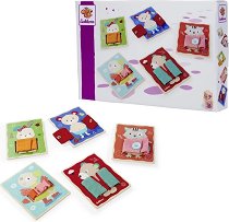 Комплектът с дървени плочки за закопчаване от Eichhorn е създаден, за да помогне на децата да развиват своите фини двигателни умения по забавен и образователен начин. Той включва 5 различни животинки – като пате, коте, мече и други, всяка от които има дрешка с уникален вид закопчаване. Малчуганите могат да упражняват своите умения, като закопчават и откопчават копче, цип, кукичка, тик-так копче и катарама. Тази занимателна игра не само забавлява, но и подпомага координацията око-ръка, търпението и логическото мислене, като едновременно подготвя децата за ежедневни дейности като обличане. Изработен от висококачествено ... |