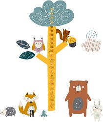 Детският ръстомер В гората от Адари е шарен, забавен и функционален. Той е чудесен начин да следите растежа на вашето дете, като едновременно с това добавите свеж акцент в детската стая. Комплектът съдържа цветни стикери с форма на дърво, около които могат да бъдат разположени весели горски животни – бухал, катеричка, лисица, мечка, заек и таралеж. Скалата измерва ръст от 30 до 150 cm, а стикерите са изработени от висококачествено PVC фолио Avery Dennison, което се поставя лесно върху стена и се отличава с издръжливост и наситени цветове. ... |