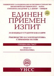 Ръководство за самоподготовка с примерни тестове ... Въвеждането на единен приемен изпит (ЕПИ) за кандидатстване в Университета за национални и световно стопанство, Икономическия университет - Варна, и Стопанската академия "Д. А. Ценов" - Свищов, се осъществява съгласно решения на академичните съвети на тези университети. Тестовите примерни въпроси в настоящия сборник са единни за трите университета. Всеки университет определя обаче самостоятелно конкретната организация и датите на провеждане на изпитите, както и по кои от специалните модули (математика, литература, икономика, история и география) ще се ... |