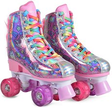 Когато избираме подарък за детето, ни се иска той да може да се използва максимално дълго време. А ролковите кънки от "BYOX" са елегантен начин да дадете възможност на своето дете да развива уменията си на колела. Те са подходящи за начинаещи и ще се харесат на всяко момиче, благодарение на атрактивния дизайн на еднорози и цветни връзки. Обувката и шасито са направени да издържат на обикновено каране в градски условия, алеи и тротоари. Обувката може да се регулира с разлика до 4 размера с помощта на ръчка, разположена в задната ѝ страна. Кънката е изработена от полиуретан, а вътрешността ѝ е от мека ... |