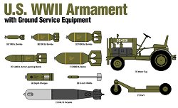Комплект умалени модели на бомби и наземно оборудване, използвани през Втората Световна война от Американската армия. Фигурите са от едноцветна пластмаса. Може да се боядисват с боички. За да може да сглобите и залепите този макет, ви е необходимо лепило. Препоръчани боички от производителя за оцветяване на моделите - "Mr. Hobby" / "Mr. Color": 304 / 304 Olive Drab FS34087 8 / 8 Silver 12 / 33 Flat black 18 / 28 Steel ... |