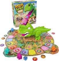 Бързай да се измъкнеш, преди да те достигне езикът на динозавъра! Снак-о-завър Рекс от Spin Master е весела и изпълнена с действие настолна игра, в която играчите помагат на пещерните герои Ог, Бог, Грог и Шърли да събират храна, докато се пазят от ненаситния динозавър Снак-о-завър Рекс. С едно движение можеш да задействаш неговия впечатляващо дълъг език, който се протяга към апетитните хапки... или към някой от участниците. Ако бъдеш уцелен, рискуваш да изгубиш част от събраните лакомства. Използвай динозавъра стратегически - насочи го към желана храна или към противник, за да го върнеш назад в играта. Характеристики: ... |