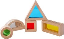 Предизвикайте интереса на вашето мъниче с комплекта от цветни геометрични фигури. Той е подходящ за деца над 3-годишна възраст и е изработен от дърво, а вътрешната част е от прозрачен материал. Комплектът има за цел да запознае децата с основните цветове. С елементите могат да се строят различни фигури, да се изучава светлината и как тя се пречупва през цветовете, или да видим околния свят в различен цвят. Поставяйки няколко фигури една пред друга, може да се изследва комбинацията от цветове и как се образуват нови такива. Всяко от блокчетата е в удобен размер, съобразен с детските ръчички. За метода на Монтесори ...