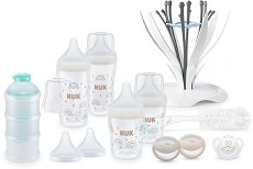 Комплектът за новородено е част от серията Perfect Match, където ще откриете още продукти, които се адаптират към индивидуалните нужди на бебето. ... Комплектът за новородено на NUK съдържа шишета за хранене, силиконови биберони, залъгалки, четка за почистване на шишета, сушилник и дозатор за сухо мляко. Бибероните за хранене Perfect Match се отличават с това, че се адаптират към вашето бебе, тъй като за особено меки и гъвкави. Те прилепват нежно към устните и небцето на вашето бебе. Формата им улеснява бебето да засуче спокойно и естествено, тъй като млякото тече леко. Предвиденият антиколик вентил прави възможно ... |