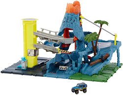 В изследователския център изригва вулкан. Ще бъдете ли достатъчно бързи да успеете да избягате, преминавайки през различни препятствия, заобикаляйки и избягвайки вулканични отломки? Комплектът от Matchbox е подходящ за деца над 3-годишна възраст. Той се състои от елементи за сглобяване на писта около вулкан, като е включена и малка метална количка - джип. Пистата е пластмасова и разполага с множество дейности - асансьор, горивна станция, писта за спускане, гараж и други. А най-забавното е, че има допълващи фигурки, като орангутан, паднало дърво, палми и други, които служат като препятствия. Вулканът може да изригва, ... |