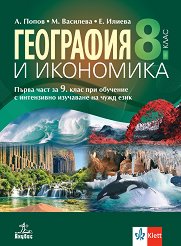 Първа част за 9. клас при обучение с интензивно изучаване на чужд език. ... Учебникът е богато илюстриран, със сравнително кратки текстове, в които на достъпен език са обяснени сложни природни процеси и явления. Учебното съдържание е актуално, с подходящи допълнителни текстове, със система от илюстрации и схеми, позволяващи по-лесно усвояване. Учебната система по география и икономика за 8. клас на издателство Просвета се състои от: учебник тематични листове атлас Изброените компоненти от учебната система се продават поотделно. За да закупите някой от тях, последвайте съответния линк. Настоящото ... |