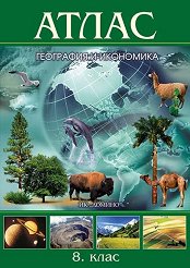 Поредността на картите и изображенията в атласа съответства на темите във всички одобрени от МОН учебници за 8. клас. Помагалото може да се използва от всички ученици, без значение по кой учебник за 8. клас се обучават. То ще помогне на учениците да се ориентират в пространственото разположение на изучаваните природни процеси и явления. Атласът включва 15 карти и 6 изображения. Съдържанието му е съобразено с новата учебна програма по география и икономика за 8. клас и с номенклатурата в нея. Учебната система по география и икономика за 8. клас се състои от: учебник тематични листове книга за учителя атлас ... |