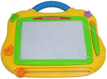 Детската магическа дъска за рисуване е подходяща за всички деца, които обичат да рисуват. С помощта на прикрепената към нея писалка, детето ви не само ще създава прекрасни картини, но ще може и да се упражнява да пише и то по един по-забавен и нестандартен начин. Полето за рисуване разполага с 6 цвята, с които картината ще стане още по-интересна. Всичко ще бъде изтрито за секунди с плъзгането на бутона, който се намира в долната част на дъската. След което малчуганът ще може да започне да твори отново и отново своите шедьоври. Дъската е с приблизителни размери 34.3 x 43.8 cm. ... |