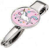 Закачалка за чанта от серията "Unicorn" на "TROIKA" е съчетание на елегантност с практичност. Тя е изработена от метал с лъскав многоцветен дизайн на еднорог. Може да издържи тегло до 5 kg и е с размери 3.5 / 8.5 / 2 cm. Декоративната държач е удобен за използване, когато е необходимо да закачите дамската си чанта върху плот на маса или бюро. Закачалката прави вашата любима чанта наистина уникална и е практичен подарък за всеки повод. ... |