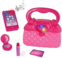 Децата ще се зарадват на дамския комплект. Малките дами могат да играят с чанта и телефон. Те могат да разиграват ролеви игри като се гримират с червило и сенки за очи или пазаруват с кредитна карта. Чантата разполага със сърце, което може да свети, когато се натисне. Телефонът също има бутон сърце, което при натиск свети и издава мелодичен звук. Дайте шанс на децата да играят и да се забавляват. Размерите на дамската чанта са 17.5 x 23.5 cm. Телефонът и чантата работят с по 3 батерии LR44, които са включени с демонстрационна цел и е необходимо да се заменят с нови. ... |