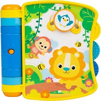 Музикалната книжка от "WinFun" ще зарадва всяко дете! Тя е пластмасова и разполага с бутон за включване и изключване. Книжката е подходяща за деца над 6 месеца и има изображения на усмихнати животинки, което ще допринесе за положителните емоции на детето. На всяка страничка има вградени различни подвижни елементи и дъвкалки, благодарение на които детето ще чеше своите венци, докато му растат зъбки. Звуците, които книжката издава, са забавни и ще радват малчугана. Книжката работи с 2 батерии AAA 1.5 V, които са включени в комплекта с демонстрационна цел и е желателно да бъдат посменени с нови. ...
